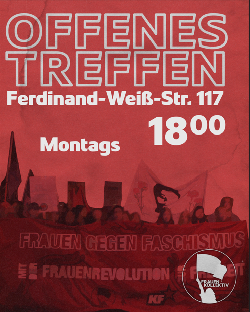 Um dieses System zu überwinden, indem Millionen Menschen auf Grund ihres Geschlechts und ihrer Klassenzugehörigkeit ausgebeutet und unterdrückt werden, organisieren wir uns im Frauenkollektiv, schaffen einen Raum, in dem wir Frauensolidarität zur konkreten Praxis werden lassen und kämpfen für eine klassenlose Gesellschaft, in der die Unterdrückung des Menschen durch den Menschen beseitigt ist.