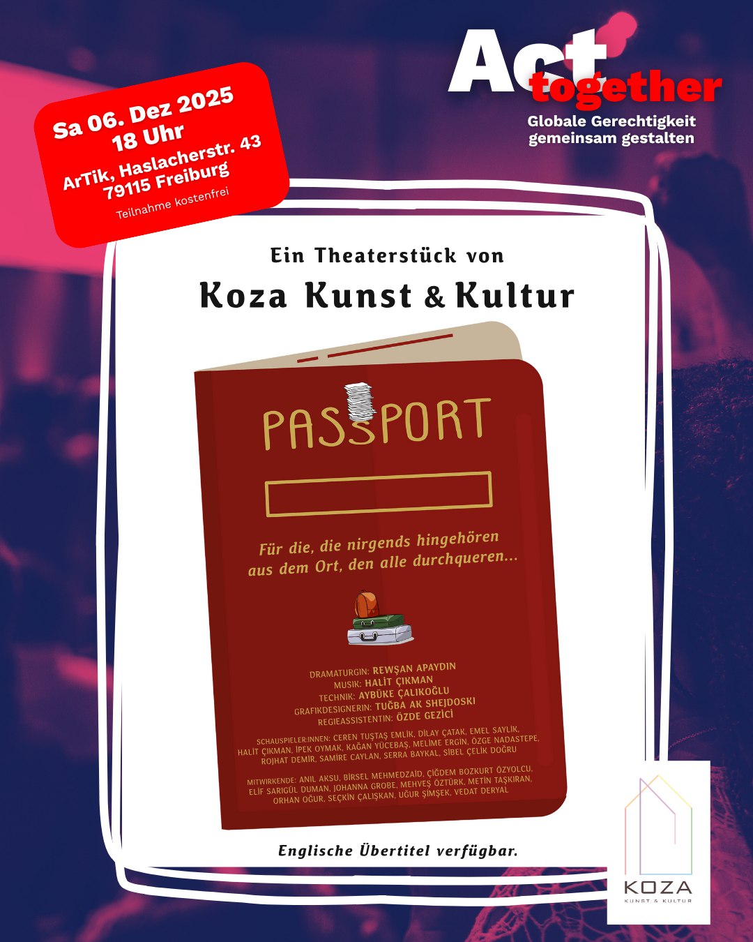 PASsPORT erzählt die Geschichte vom Verlorensein aus der Sicht mehrerer Immigranten, mitten in einer absurden Welt. Es bringt die tragischen und komischen Seiten des Hinterfragt-, Übersehen- und Nie-genug-Seins auf die Bühne. In einer Welt, in der Identität über Formulare und Zugehörigkeit über Dokumente definiert wird, ist dies die Geschichte jener, die mitten im System nach einem Platz suchen und doch immer draußen bleiben. Witzig? Vielleicht. Lächerlich? Und wie. Wahr? Leider ja.