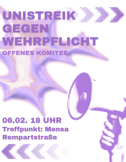Freitag, 06.02.26 um 18:00 Uhr - 20:00 Mensa Rempartstr. Rempartstraße 18 79098 Freiburg Deutschland Themen Krieg und Militarisierung Type of Event Plenum & Treffen