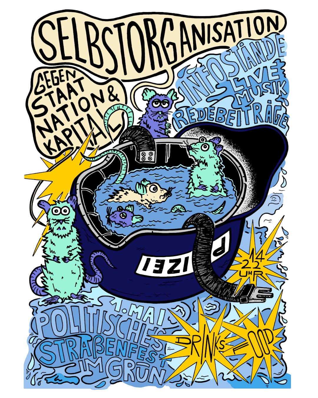 Das Straßenfest zum 1. Mai im Grün ist seit vielen Jahren selbstverwaltet und wird von verschiedenen Gruppen und Initiativen organisiert. Als Gruppe habt ihr die Möglichkeit eure aktuellen Themen zu präsentieren. Als Einzelperson kannst du dich umschauen, was so geht in der Stadt. Alle* sind eingeladen sich zu beteiligen, sei es mit einem Essensstand, Kinderprogramm, einem Infostand oder mit dem Sofa vor der Haustür.