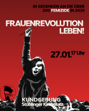 Kundgebung gegen Femizide Dienstag, 27.01.26 um 17:00 Uhr Frauenrevolution leben - In Gedenken an über 200 Femizide 2025 allein in Deutschland Stühlinger Kirchplatz Auf der Seite der Kirche