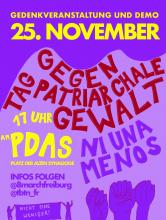 Tag gegen patriarchale Gewalt Dienstag, 25.11.25 um 17:00 Uhr - Di., 25.11.2025 - 19:00 Gedenkveranstaltung und Demo