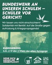 ❌🪖 Die Bundeswehr steht an unseren Schulen - Schüler vor Gericht! Mittwoch, 05.11.25 um 17:00 Uhr - Mi., 05.11.2025 - 18:00 Keine Strafen wegen Bundeswehr-Memes! Platz der Alten Synagoge