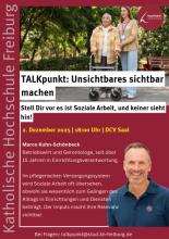 TALKpunkt: Unsichtbares sichtbar machen Dienstag, 02.12.25 um 18:00 Uhr Stell Dir vor es ist Soziale Arbeit, und keiner sieht hin! DCV ist der Veranstaltungssaal vom Deutscher Caritasverband e.V., Adresse: Karlstraße 40, 79104 Freiburg