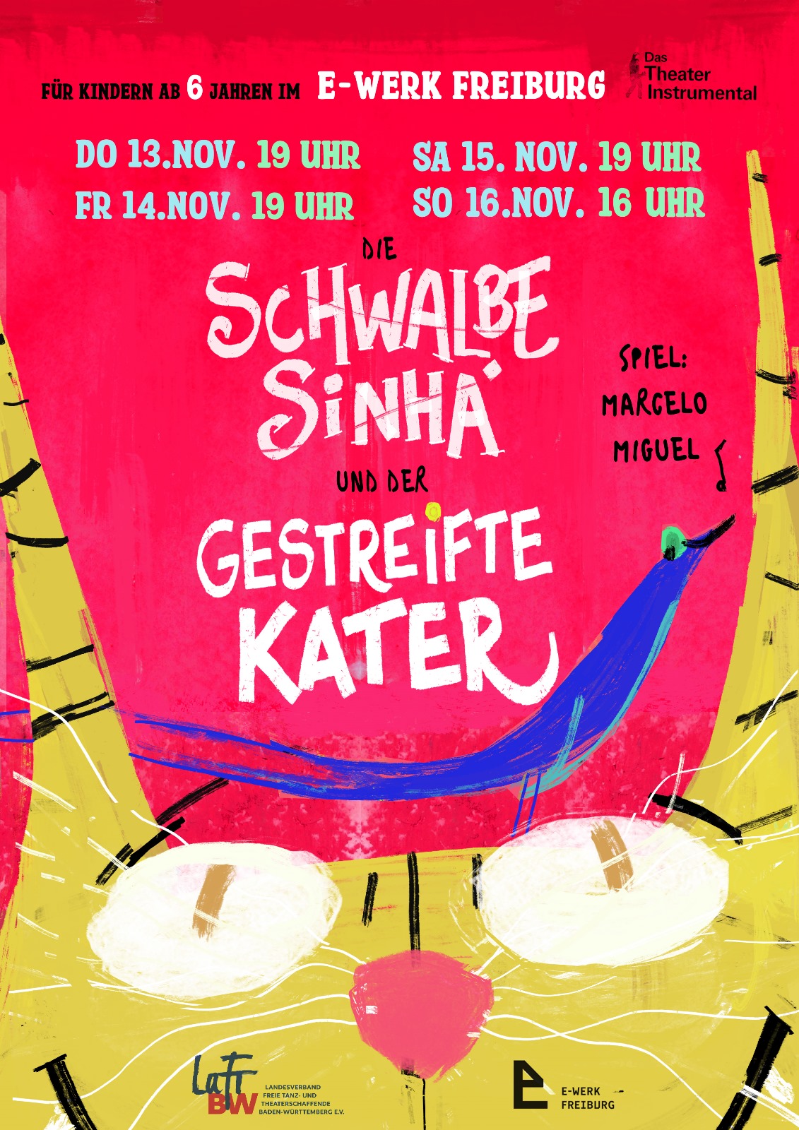 das Freiburger Theaterkollektiv Das Theater Instrumental feiert dieses Jahr sein 10-jähriges Jubiläum mit der Premiere des Kinderstückes (ab 6 Jahren) "Die Schwalbe Sinhá und der Gestreifte Kater" im Kammertheater des E-Werk Freiburg.