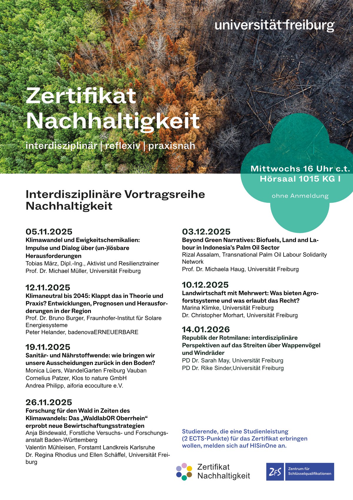 In der Interdisziplinären Vortragsreihe Nachhaltigkeit treffen diverse Disziplinen aus Wissenschaft und Praxis aufeinander – geben Impulse für Lösungsansätze und öffnen Raum für Dialog.