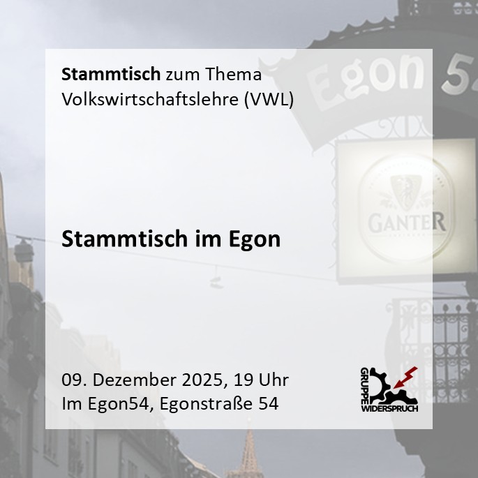 Kommt gerne zu unserem Stammtisch zum Thema Volkswirtschaftslehre (VWL) im Egon 54 (Egonstraße 54) am Dienstag den 09.12 um 19 Uhr.