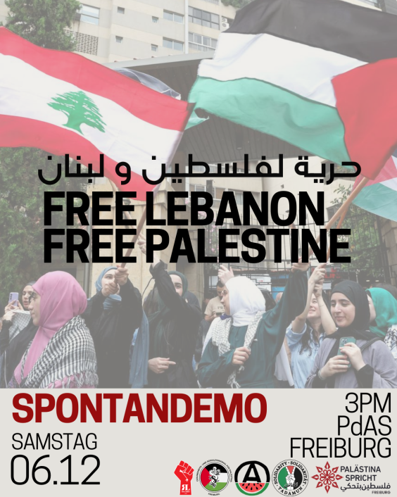 Also lasst uns zusammen gegen den Genozid demonstrieren. Lasst uns schreien, dass wir die schwache Lüge des Waffenstillstands durchschauen. Lasst uns für die Leben der Menschen im Libanon und der Freiheit des palästinenschen Volks stehen.