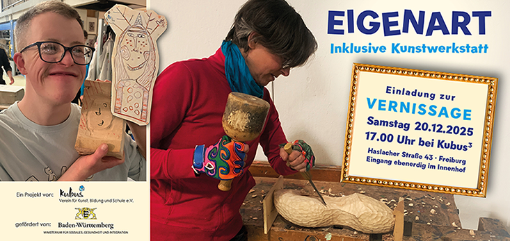 Wir feiern den Abschluss unserer inklusiven Bildhauerwerkstatt EIGENART und laden ein zur Vernissage am 20.12.25 um 17 Uhr.