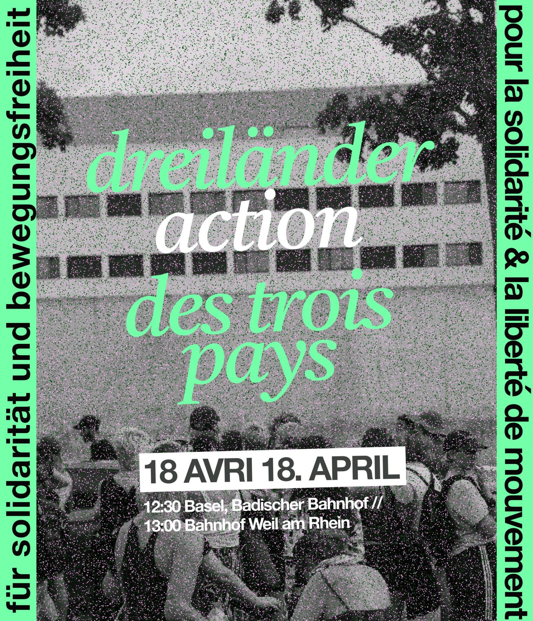 Des groupes de la région des trois frontières appellent à une action de protestation aux frontières de la Suisse, de la France et de l’Allemagne. Pour plus d'informations : https://www.aktionbleiberecht.de/aufruf-3ld/