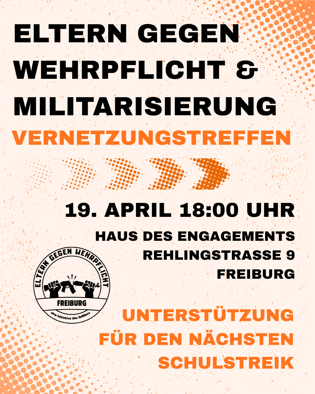 Wir kommen als Erwachsene zusammen und überlegen, wie wir den nächsten Schulstreik unterstützen können. Außerdem werden wir aktiv - gegen Krieg, Sozialstaatabbau und Kürzungen!