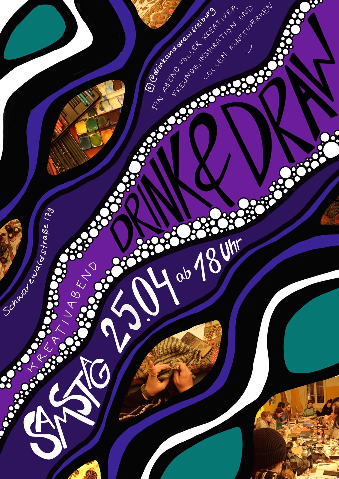 Drink and Draw ist ein offener Kreativtreff für alle den Spaß an kreativen jeglicher Art haben. Für einen Abend im Monat wird unser Raum zu einem gemeinsamen Wohnzimmer, indem die unterschiedlichsten Kunstwerke entstehen und Freunde mit gleichen kreativen Interessen sich treffen und inspirieren können.