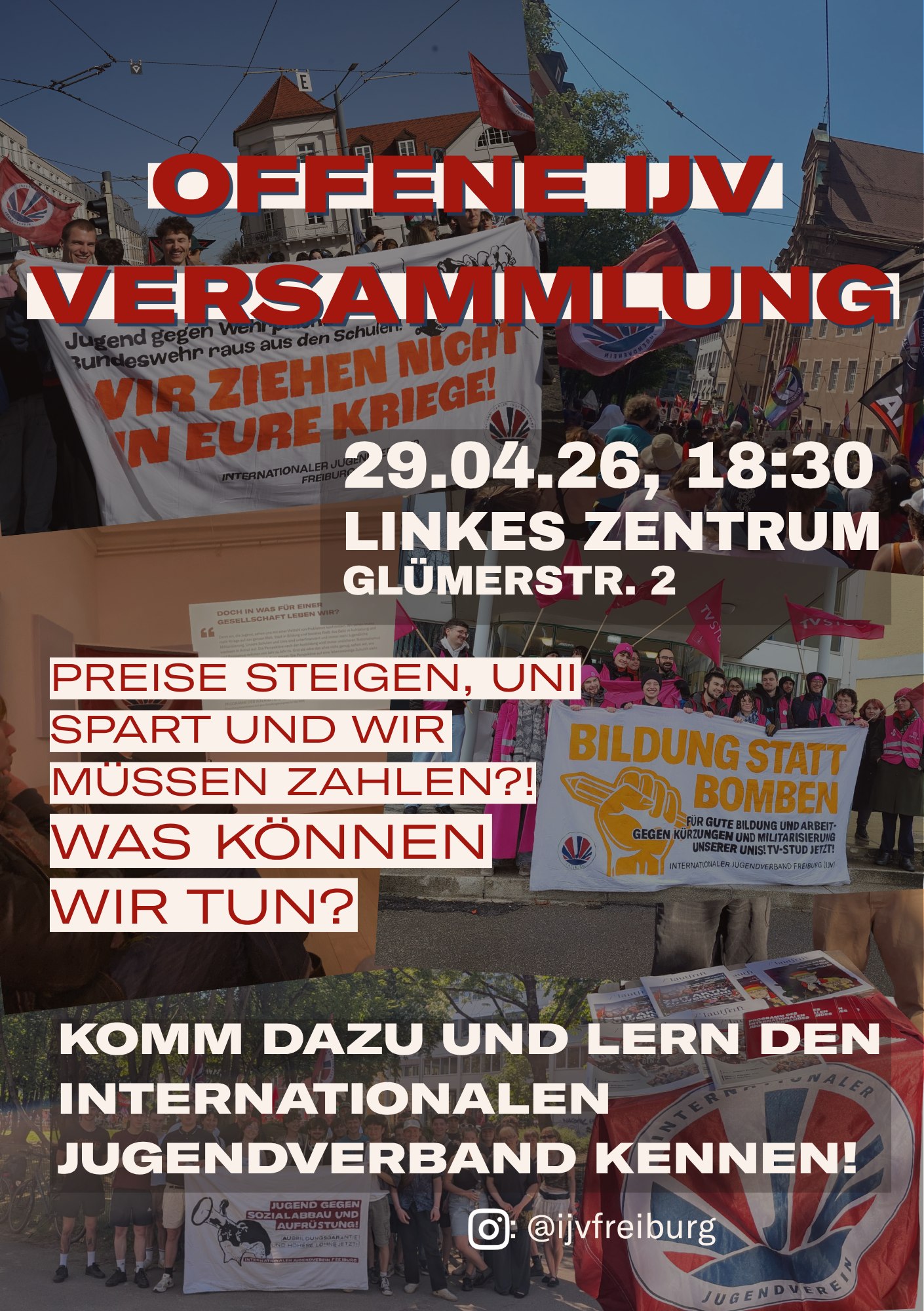 💥 Wir wollen zusammenkommen und eine politische Bewertung vornehmen - was passiert gerade in der Welt, Deutschland und Freiburg? Wie betrifft uns das? Wie können wir uns dagegen wehren und welche Rolle spielt der IJV?