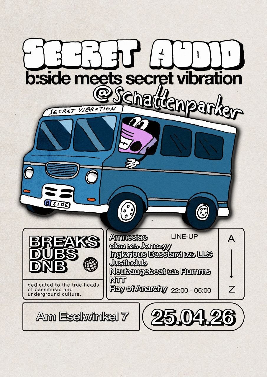 B:Side und Secret Vibration laden ein zu proper Soundage ohne Nächtliche Nachbarn Nervensägerei im Herzen der Schattenparker Community.