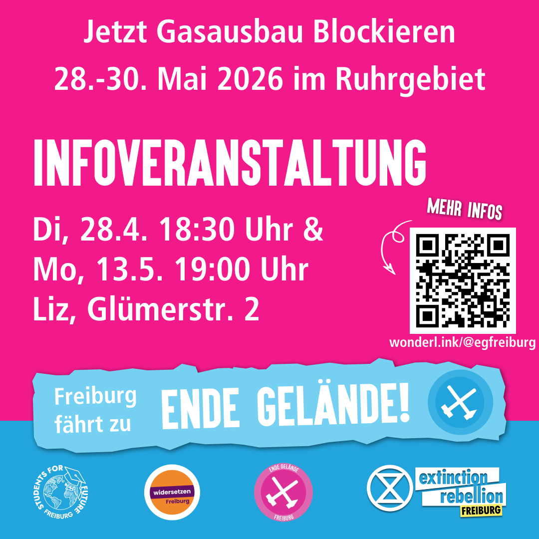 Für weitere Informationen zu Aktionstrainings, Veranstaltungen und Anreise aus Freiburg könnt ihr dem Infochannel auf Signal beitreten:https://wonderl.ink/@egfreiburg