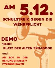 🚩 Schulstreik gegen Wehrpflicht 🚩 Freitag, 05.12.25 um 10:00 Uhr - Fr., 05.12.2025 - 15:00 Wehren wir uns gegen die Wehrpflicht! Platz der Alten Synagoge