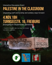 Palestine in the classroom - Interactive discussion Dienstag, 04.11.25 um 18:00 Uhr - Di., 04.11.2025 - 20:00 ganz woanders Turnseestr. 16