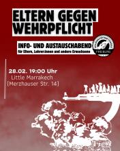 Wir wollen als Erwachsene zusammenkommen und uns darüber austauschen, wie wir die Jugend bei ihrem Streik gegen die Wehrpflicht unterstützen, und selber aktiv werden können. Vernetzungstreffen und Infoabend.