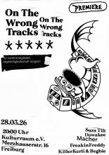 On the wrong tracks !!! Freiburg bleibt underground. Samstag, 28.03.26 um 20:00 Uhr Freiburg bleibt underground. If you know it, then you know. Kulturraum Freiburg e.V.