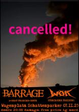 ABGESAGT: BARRAGE/WOR Freitag, 07.11.25 um 20:00 Uhr Dem grauen November auf den Kopf kacken! Schattenparker