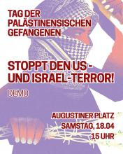 STOPPT DEN US- UND ISRAEL-TERROR! Samstag, 18.04.26 um 15:00 Uhr Demo zum Tag der Palästinensischen Gefangenen Augustinerplatz